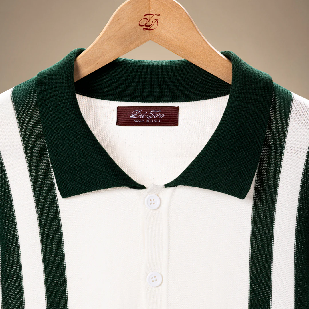 Inspired by vintage Italian style, the Vintage Stripe Polo Cardigan is a display in timelessly elegant design. Representing a combination of multiple Italian aesthetics, the garment is uniquely versatile and can be worn in any season. Crafted for a regular fit, the style features a 7-button front placket, two small side pockets, and inter-woven front stripes that are a true nod to heritage Italian style. Designed for both Men & Women.