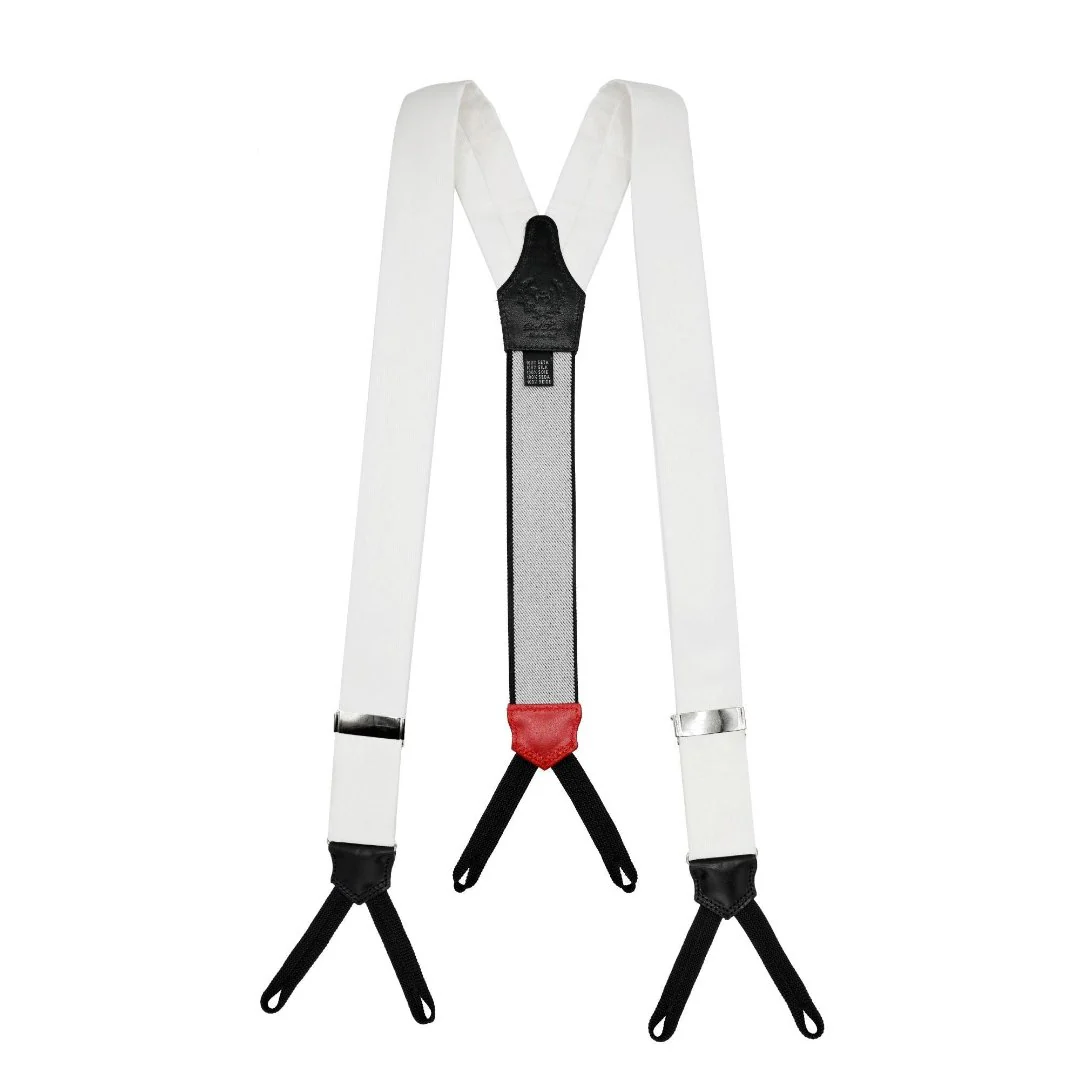 White Silk and Leather Suspenders